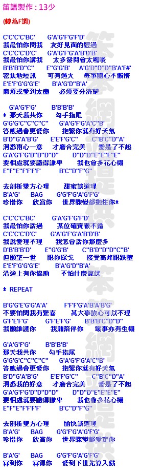 流行曲笛譜 / 牧童笛譜 / 笨笨網站