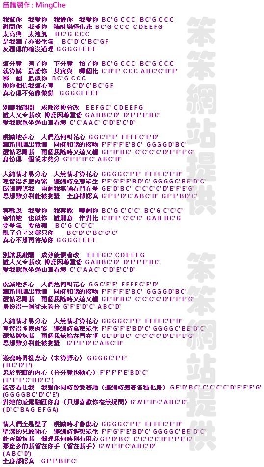 流行曲笛譜 / 牧童笛譜 / 笨笨網站
