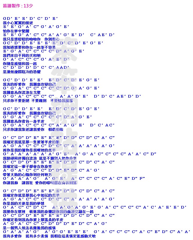 流行曲笛譜 / 牧童笛譜 / 笨笨網站